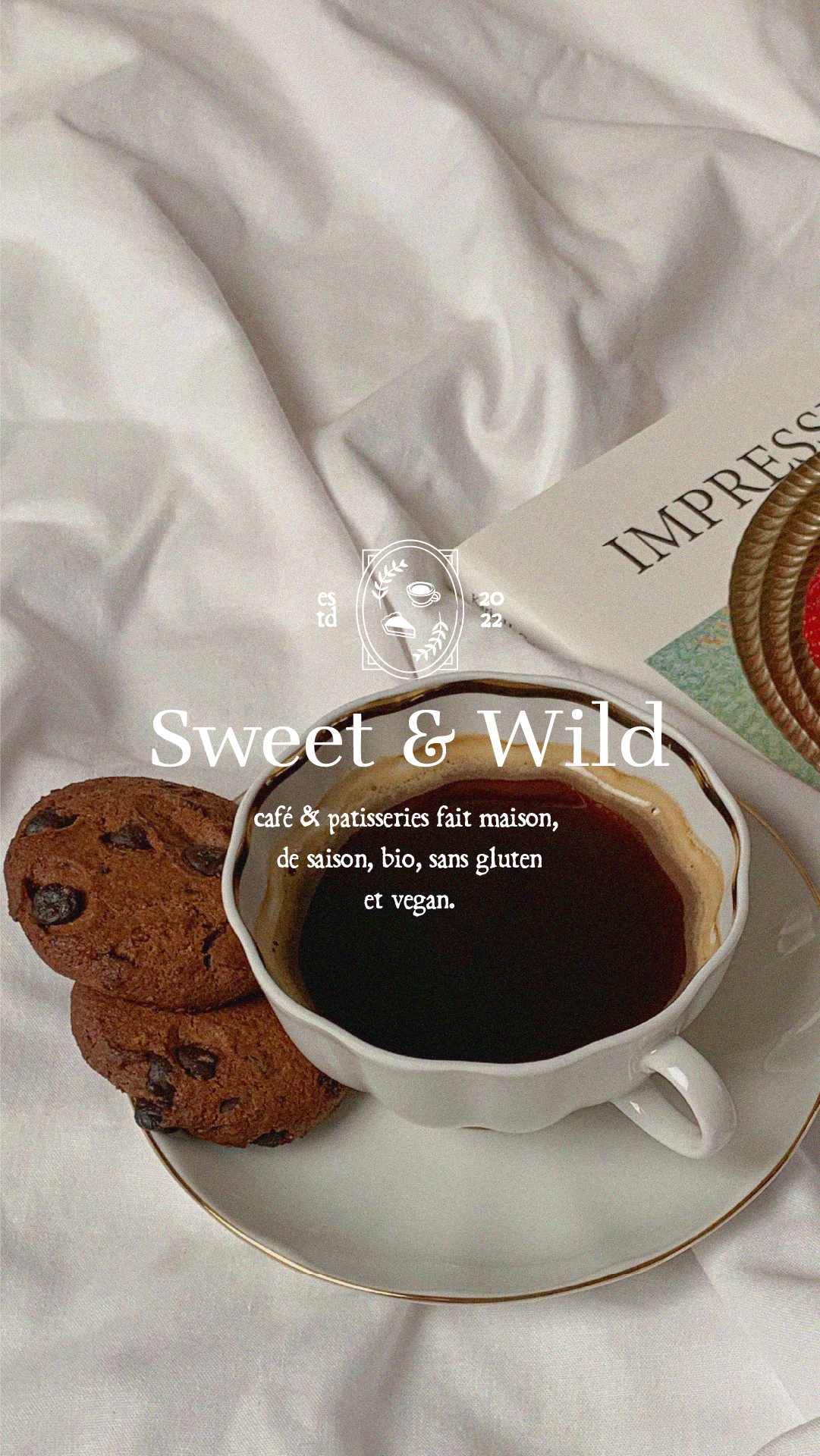 Salon de thé proposant des pâtisseries végétaliennes et sans gluten. Création d’un univers visuel doux, simple et sophistiqué, en lien avec des valeurs naturelles et gourmandes.